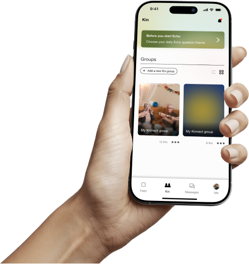Kinnect turns everyday moments into deeper connections. Whether it’s a thoughtful nudge, a daily reflection, a birthday celebration, or sharing stories in a private Kin group, every interaction helps you stay closer to the people who matter most